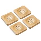 uxcell 木製の石鹸皿 浴室 浴槽 キッチン 水槽用 自動排水機能付き 天然竹質 石鹸トレイ 石鹸ラック 貯留器 4個入り