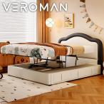 [セミダブル]VeroMan ベッド 収納ベッド ラック やさしい猫耳デザインベッド ふんわり リラックス空間 韓国インテリア 韓国家具 [高さ120cmx幅220cm]