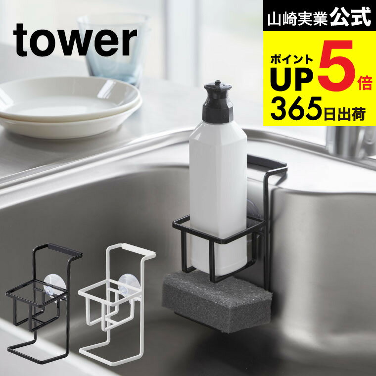 [ 吸盤 スポンジ&ボトルホルダー タワー ] 山崎実業 公式 tower ホワイト/ブラック スポンジ置き 洗剤置き スポンジラック シンク周り キッチン収納 シンプル おしゃれ 4774 4775 タワーシリーズ キッチン 用品 JGS 最強配送 dej cpj 送料無料