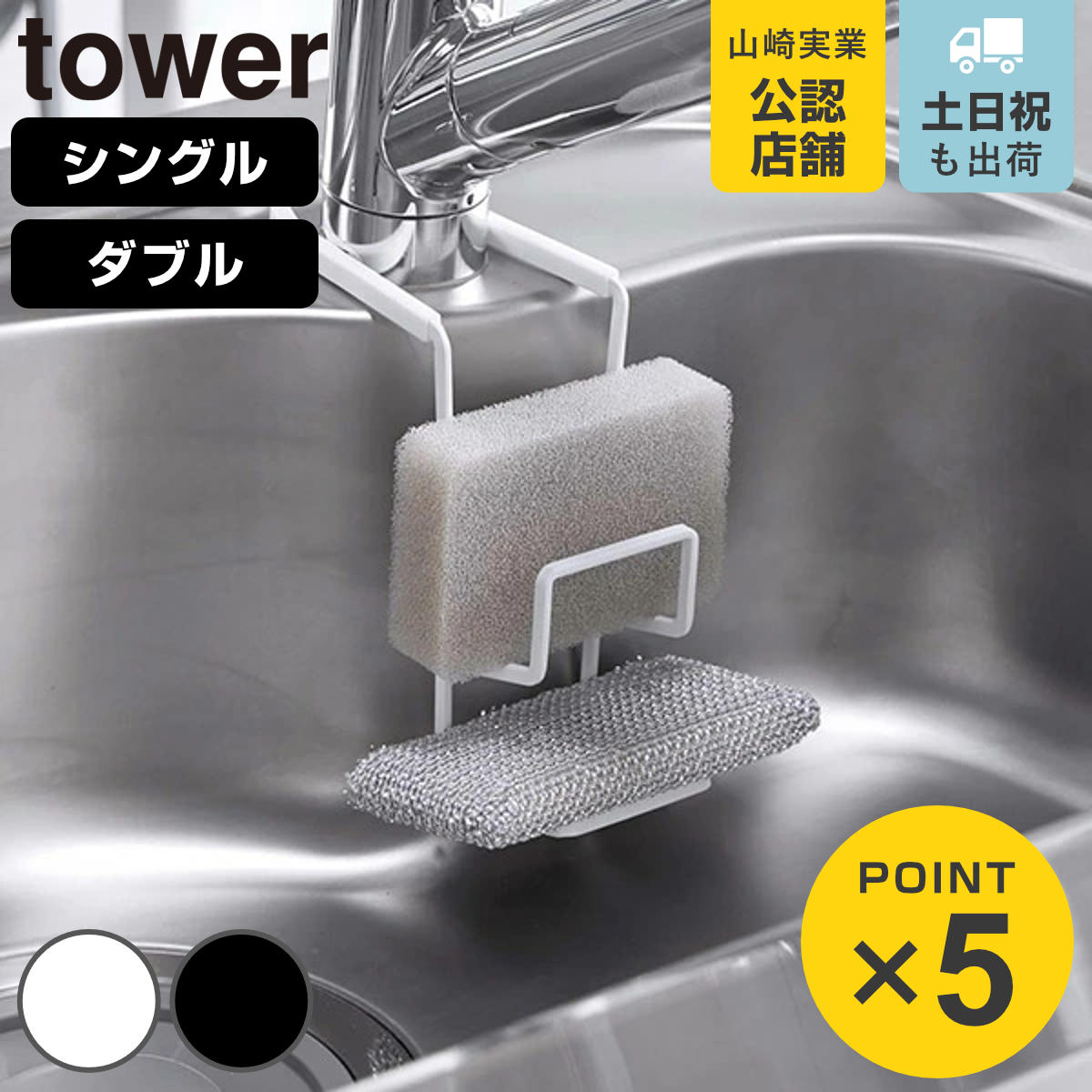 【365日出荷&当店限定特典付き】山崎実業 スポンジラック ダブル スポンジ置き 蛇口にかけるスポンジホルダー タワー tower 公式 キッチン収納 シンク周り シリコン お手入れ簡単 ホワイト ブラック 4390 4391