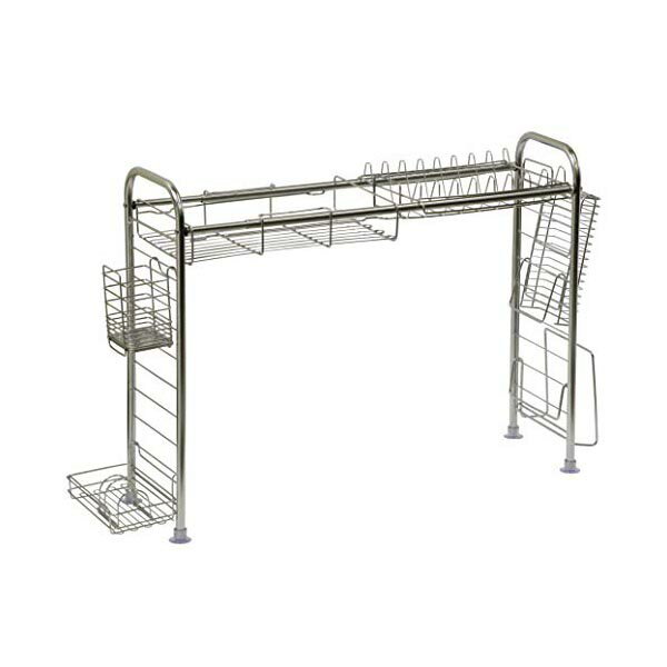 水切りラック シンク上 水切ラック 食器洗いかご 水切りかご 2段 ステンレス スタンダードタイプ 付属品有り | (幅90cm{内寸}×奥行26cm×高さ82cm) ステンレス