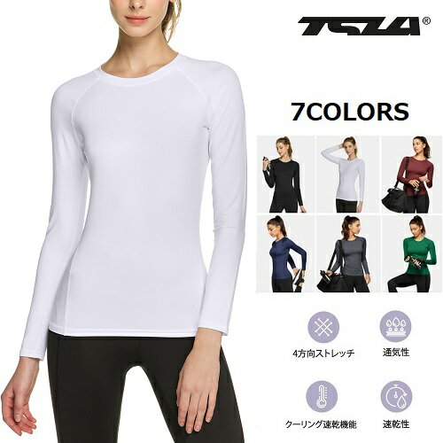 テスラ スポーツ インナー 長袖 レディース tシャツ 伸縮性 吸汗速乾 トレーニングウェア ランニングウェア コンプレッション アンダーシャツ スポーツウェア 機能性 インナー TSLA FUD01/11