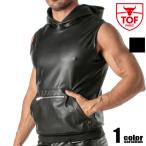 TOF PARIS/Trends Of FriendsKinkyZippedPocket Sleeveless Hoodieフェイクレザー フード付き