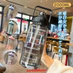 ウォーターボトル 水筒 2リットル 2000ml 水分補給 クリアボトル 目盛り ワンタッチ式 大容量 漏れ防止 スポーツウォーターボトル ドリンク アウトドア スポーツ