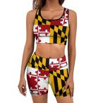 【並行輸入品】メリーランド州旗 ヨガセット レディース アウトフィット 2ピース スポーツブラトップとショーツ レギンス トラックスーツ, メリ