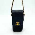 シャネル CHANEL ブラック チョコバー チェーンショルダー 携帯ケース スマホケース ミニバッグ 斜め掛け 黒 ブラック ラムレザー ゴールド金具 Gカード 箱 布袋 ランクA 女性用バッグ 【中古】