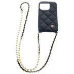 CHANEL シャネル ココマーク金具付 iPhone14 Pro チェーンショルダースマホケース ブラック