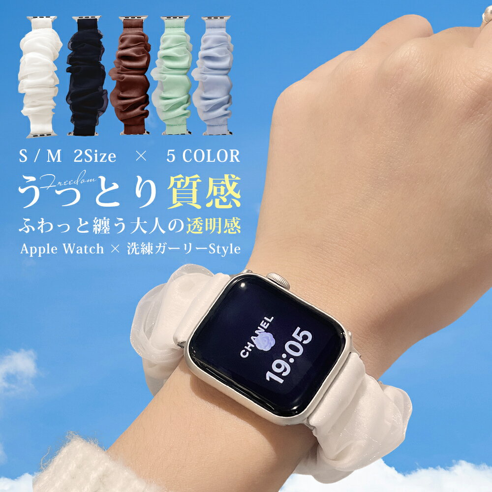 【今だけ★10%OFFクーポン!】Apple Watch バンド シュシュ レディース アップルウォッチ バンド スポーツ SE かわいい シアー フリル シルク くすみカラー 蒸れない 伸縮性 着脱簡単 交換バンド スマートウォッチ ベルト 韓国風 ギフト Apple Watch 10 42mm 46mm バンド