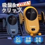 スマホホルダー ワイヤレス充電器 車載ホルダー 充電ホルダー 車載充電器 スマートフォン 吸盤式 伸縮アーム 自動開閉式 置くだけ充電 全機種対応