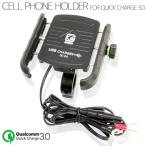 バイク スマートフォンホルダー QC3.0 クイックチャージ USB充電 高速充電 急速充電 USBポート 防水 携帯電話ホルダー スマホホルダー ハンドルマウント