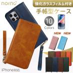 【在庫処分・強化ガラスフィルム付き】高級本革 ストラップ付 手帳 ケース スタンド iPhone 15 14 13 12 Pro ProMAX Plus SE3 SE2 8 7 カバー カード収納 レザー