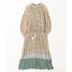 ワンピース 折紙プリント異素材切替スモックワンピース
