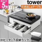 山崎実業 公式 タワー IHクッキングヒーター ラック 引き出し&スライドテーブル tower レンジ 下 コンロ キッチン 収納 家電 1293 1294
