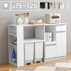 (タイムセール中) キッチンカウンター 伸縮タイプ 幅75〜125cm×40cm 高さ84cm 扉付き ゴミ箱上ラック スライド棚