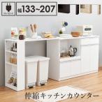 (タイムセール中) キッチンカウンター 伸縮タイプ 幅133〜207cm×40cm 高さ84cm 扉付き ゴミ箱上ラック スライド棚