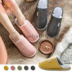 爆買 2足セット ルームスリッパ 無地 PUレザー 革 室内履き ホームスリッパ 快適ラクラク 秋冬用