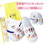 子供用アメニティ なかよしセット 150個セット(1c/s) 子供用スリッパ 21cm ハンカチ 歯ブラシセット 女の子 男の子 キッズ
