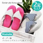 スリッパ ルームシューズ おしゃれ 室内履き 洗える レディース 夏 涼しい 送料無料 ボーダー柄パイルトングスリッパ2足セット