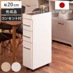 すき間収納 すき間ワゴン 幅20cm 奥行44cm スリムキャビネット キャスター付 コンセント 日本製 ランドリー収納 キッチン収納 引出し 省スペース 隙間収納 国産