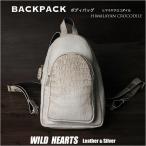 ヒマラヤクロコダイル ボディバッグ スリング ショルダーバッグ 斜め掛け バッグ ワニ革 ホワイト/白 メンズ ベリー 本革 Crocodile Skin Leather Backpack Shoulder Sling BagWILD HEARTS Leather&Silver(ID bb830t18)za022