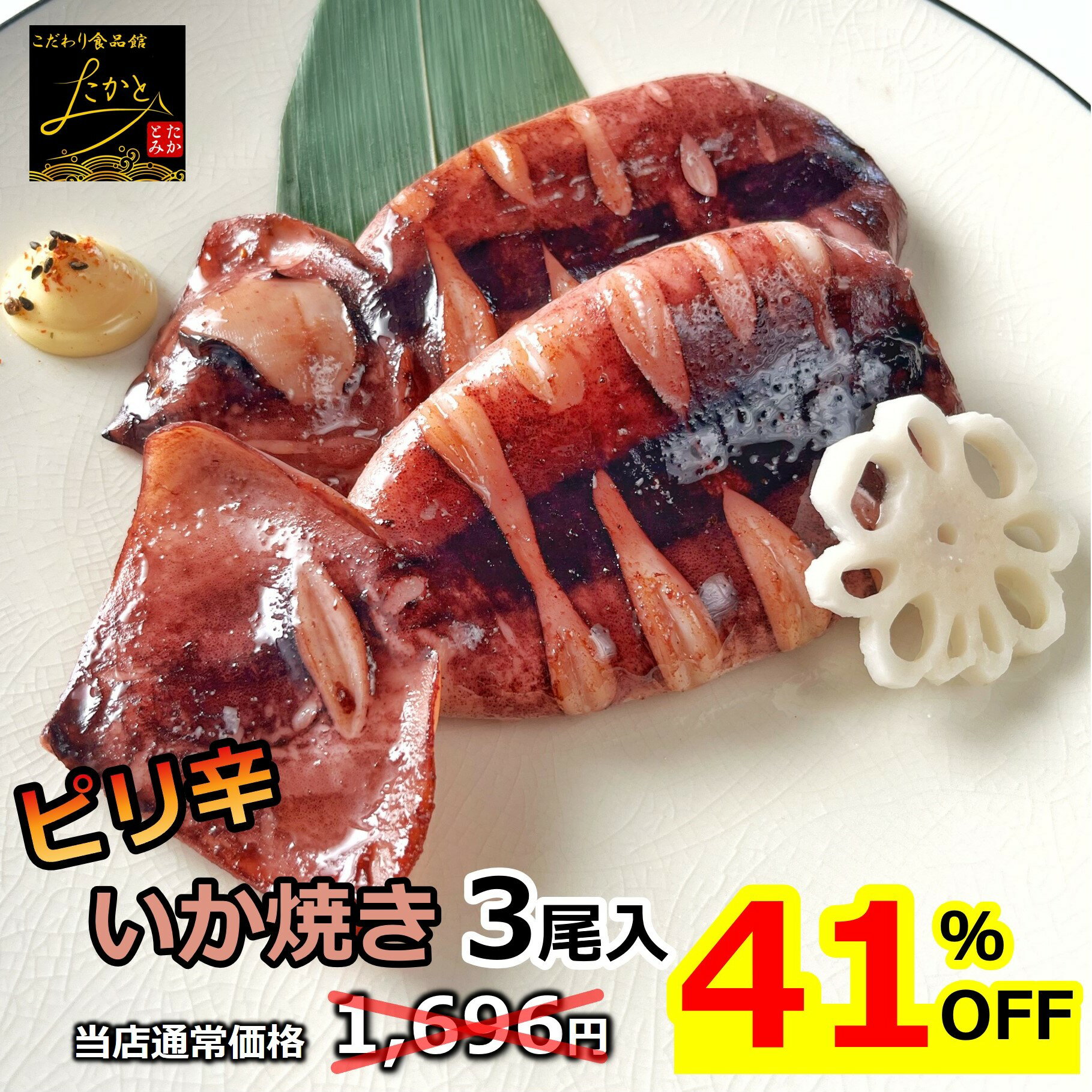 \41%OFF!30枚限定クーポンで更に10%OFFの900円に/ ピリ辛 やわらか いか焼き 3尾入り 1尾約150g前後 イカ 漬け いか 烏賊 スルメイカ 真いか ふっくら 姿焼き 漬け魚 ピリッと辛い おかず つまみ 海鮮 惣菜 冷凍 酒の肴 食品