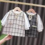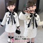 韓国子供服 スーツ ビジューパールライン ツイードアンサンブル2点set フォーマル ワンピース 長袖/入学/フォーマルスーツ/子供スーツ/女の子/結婚式/入学式