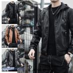 レザー フード付き メンズ パーカー PU革ジャン ライダース シンプル 皮ジャン 秋冬 服