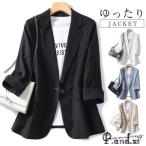 テーラードジャケット レディース スーツジャケット 綿麻混 薄手 アウター フォーマル 上着 7分袖 カジュアル セレモニー 入学式 卒業式 面接