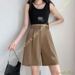 レディース スーツパンツ ハイウエスト ゆったり ワイドパンツ 半分ズボン ショートパンツ 夏 シンプル 5分丈 軽量 通気 大人 カジュアル ハーフパンツ