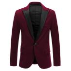 uxcell Lars Amadeus ブレザー ベルベット グスーツジャケット コート ワンボタン パーティー ウエディン メンズ レッド M