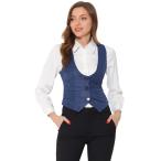 uxcell Allegra K ベスト ノースリーブ スーツ スチームパンク ジャカード チョッキ レディース ダークブルー L