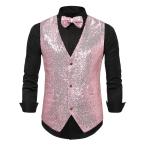 Lars Amadeus ベストノースリーブ スーツチョッキセット ディスコ シャイニースパンコール 蝶ネクタイ付き メンズ ピンク M