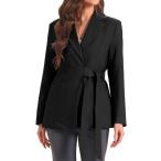 Allegra K 女性用シングルボタンブレザー オフィスラペル 長袖 ベルト付きジャケット スーツブレザー ブラック S