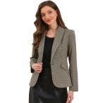 Allegra K レディース ヴィンテージ ワークブレザー 千鳥格子ノッチラペル ワンボタン オフィスコート スーツジャケット ブラウン L