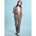 セットアップ 「洗える・ストレッチ・超軽量」羽衣ブリージングサッカー シングルジャケット・パンツセットアップ ブラウン/ネイビー レディース