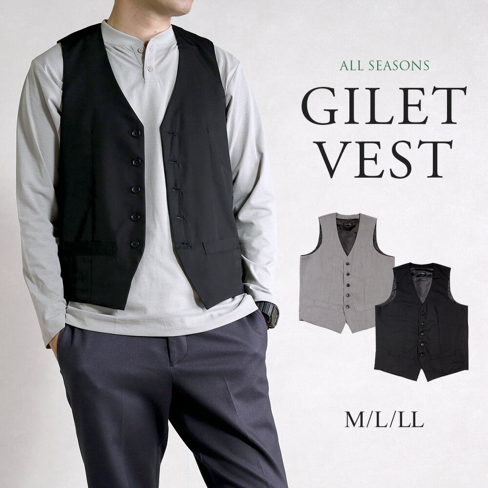 ベスト メンズ ジレ ジレベスト カジュアル ビジネス 洗える ノーカラー シングルベスト チョッキ スーツベスト 3ピース アウター M L LL ブラック グレー 無地