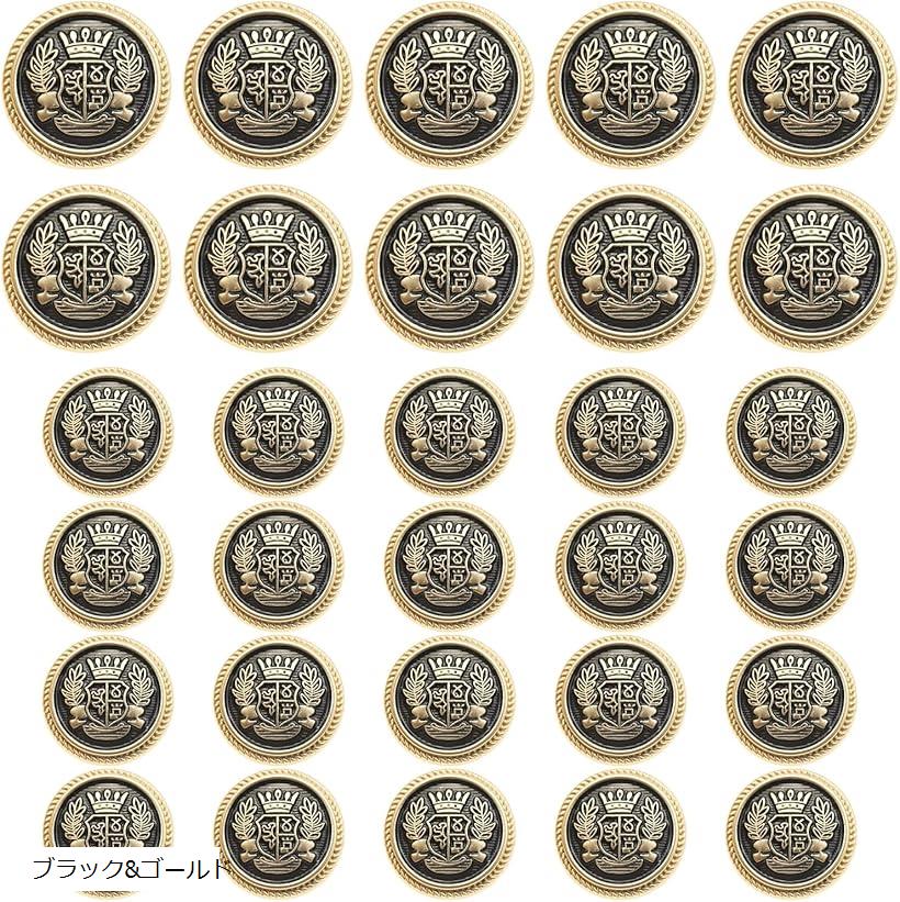 手芸 前ボタン 20mm 10個 袖ボタン 15mm 20個 セット ブレザー スーツ シングル5着分( ブラック&ゴールド)