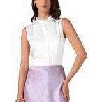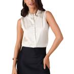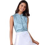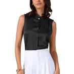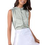 Allegra K レディース サテン トップス エレガント ノースリーブ プリーツ モックネック フリルトリム 無地 ワークブラウス シルク タンク