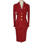 シャネル CHANEL ココマークボタン セットアップ スカートスーツ ウール レッド レディース 中古