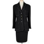 シャネル CHANEL ココマークボタン ツイード セットアップ 93C スカートスーツ ウール ブラック レディース 中古