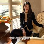 セレモニースーツ スカートスーツ 「BONLECILL noir」異素材フリルゴールドボタンノーカラージャケット&スカートセット