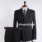 タキシードスーツ 3ピーススーツ メンズスーツ ストライプ ダブルボタンスーツ 結婚式 二次会 成人式 卒業式 就職活 春秋冬 ビジネスフォーマルスーツ