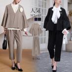 夏服スーツセットアップ トップス+パンツ 2点セット パフスリーブ袖トップス ロングガウチョパンツ カジュアル 自宅でも外出時でもカジュアルなスーツとして着用