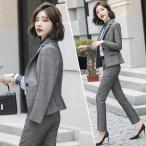セットアップスーツ レディース チェック柄 パンツスーツ 春秋冬 フォーマルスーツ 通勤 OL スーツ 2点セット オフィススーツ セレモニースーツ