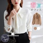 ブラウス 長袖 春 レディース オフィス シャツ ボリューム袖 リボン 入学式 仕事 トップス 通勤 スーツ インナー シフォン 卒業式 ビジネス