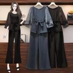 新品 パンツスーツ セットアップ レディース シフォン パンツドレス 2点セット ワイドパンツ パーティードレス ロング パンツ ブラウス シャツ フォーマル 春 夏 秋 大きいサイズ スーツ ィス OL 通勤 きれいめ