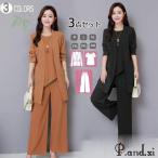 スリーピース ファッション[セットアップ 3点セット個性パンツドレス トップス ワイドパンツレディースフォーマルママ 結婚式二次会 謝恩会 卒業式 入学式40代
