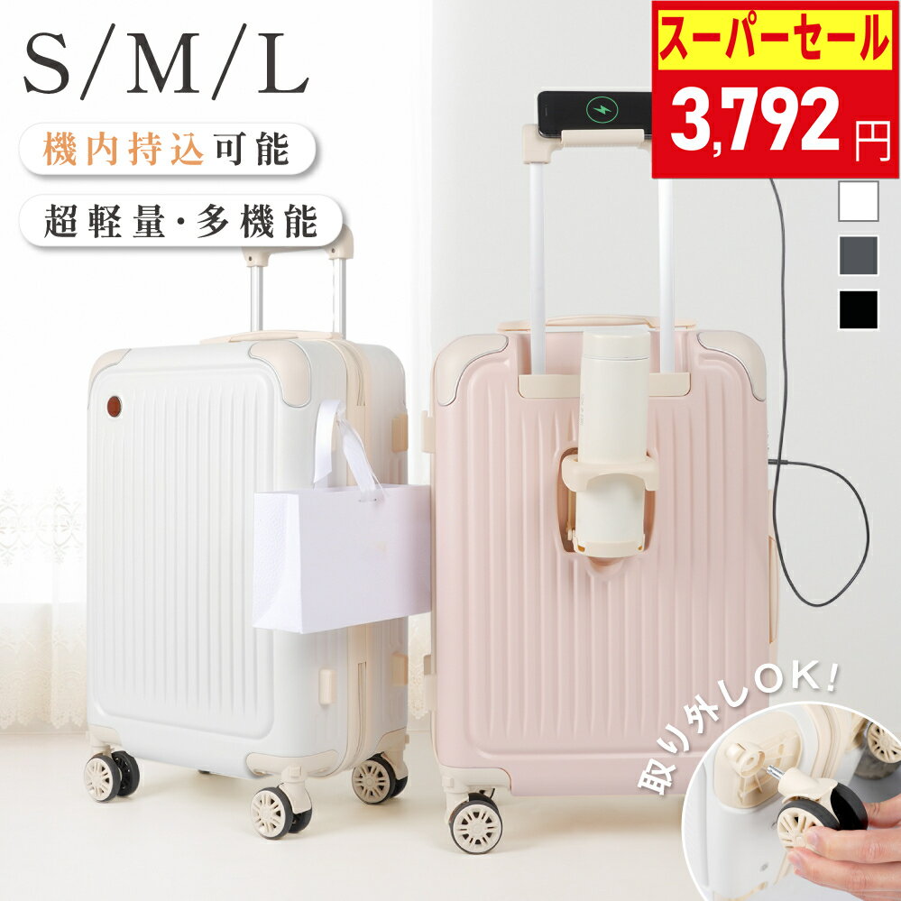 【60%OFF◆クーポン配布中】 期間限定 スーツケース 機内持ち込み 耐衝撃 USBポート付き キャリーバッグ 多収納ポケット スマホスタンド 360度回転 静音 カップホルダー付き 隠しフック 軽量設計 トランク ダブルキャスター ef-a032