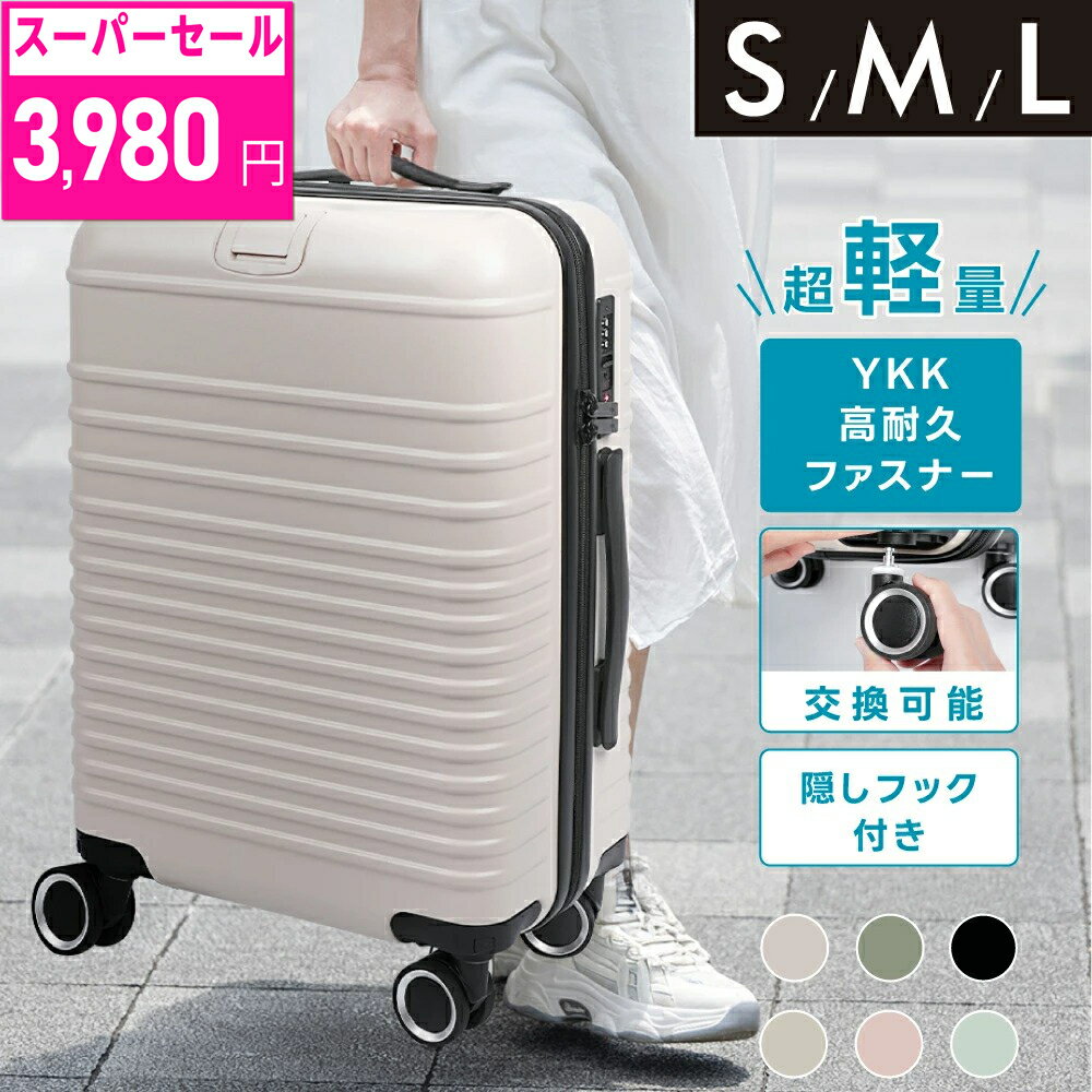 【10%OFF スーパーSALE限定】「4サイズからお選べ SS/S/M/L おまけつき」キャリーケース スーツケース Mサイズ TSAロック Sサイズ 機内持ち込み SSサイズ Lサイズ キャリーバッグ 軽量 旅行カバン 超軽量 国内 出張用 可愛い 旅行バック かばん 2泊3日 3泊4日