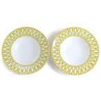 (新品・未使用品)エルメス HERMES ソレイユ ドゥ エルメス スーププレート 2点セット 皿 食器 陶磁器 ポーセリン イエロー ホワイト 黄 白 箱付